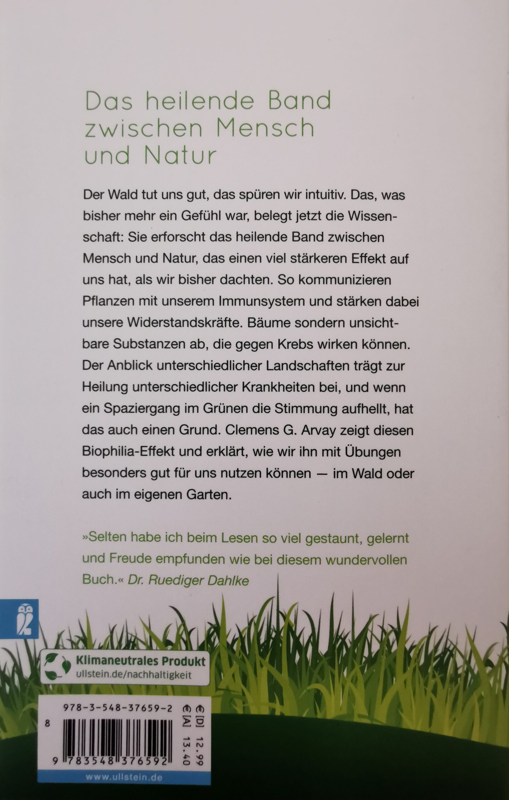 Der Wald tut uns gut, das spüren wir intuitiv. Doch was bisher mehr ein Gefühl war, belegt jetzt die Wissenschaft. Sie erforscht das heilende Band zwischen Mensch und Natur, das einen viel stärkeren Effekt auf uns hat, als wir bisher dachten. So kommunizieren Pflanzen mit unserem Immunsystem, ohne dass es uns bewusst wird, und stärken dabei unsere Widerstandskräfte. Bäume sondern unsichtbare Substanzen ab, die gegen Krebs wirken. Der Anblick unterschiedlicher Landschaften trägt zur Heilung unterschiedlicher Krankheiten bei, und wenn ein Spaziergang im Grünen die Stimmung aufhellt, hat das auch einen Grund. Clemens G. Arvay zeigt diesen Biophilia-Effekt und erklärt, wie wir ihn mit Übungen besonders gut für uns nutzen können – im Wald oder auch im eigenen Garten.